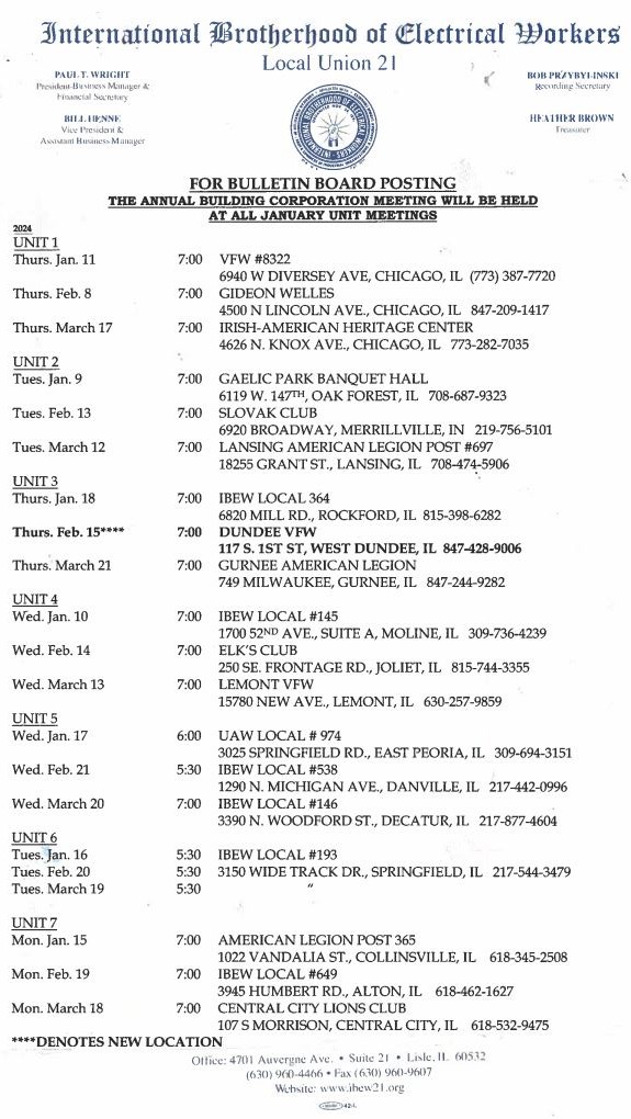 IBEW Local 21 Monthly Union Meetings